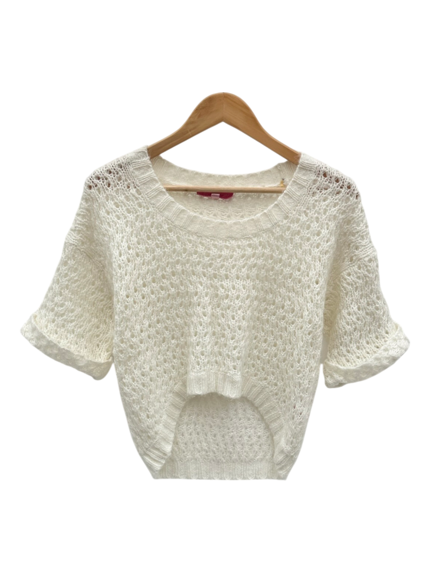 Vintage Cream Chunky Open-Knit Short Sleeve Sweater (M)