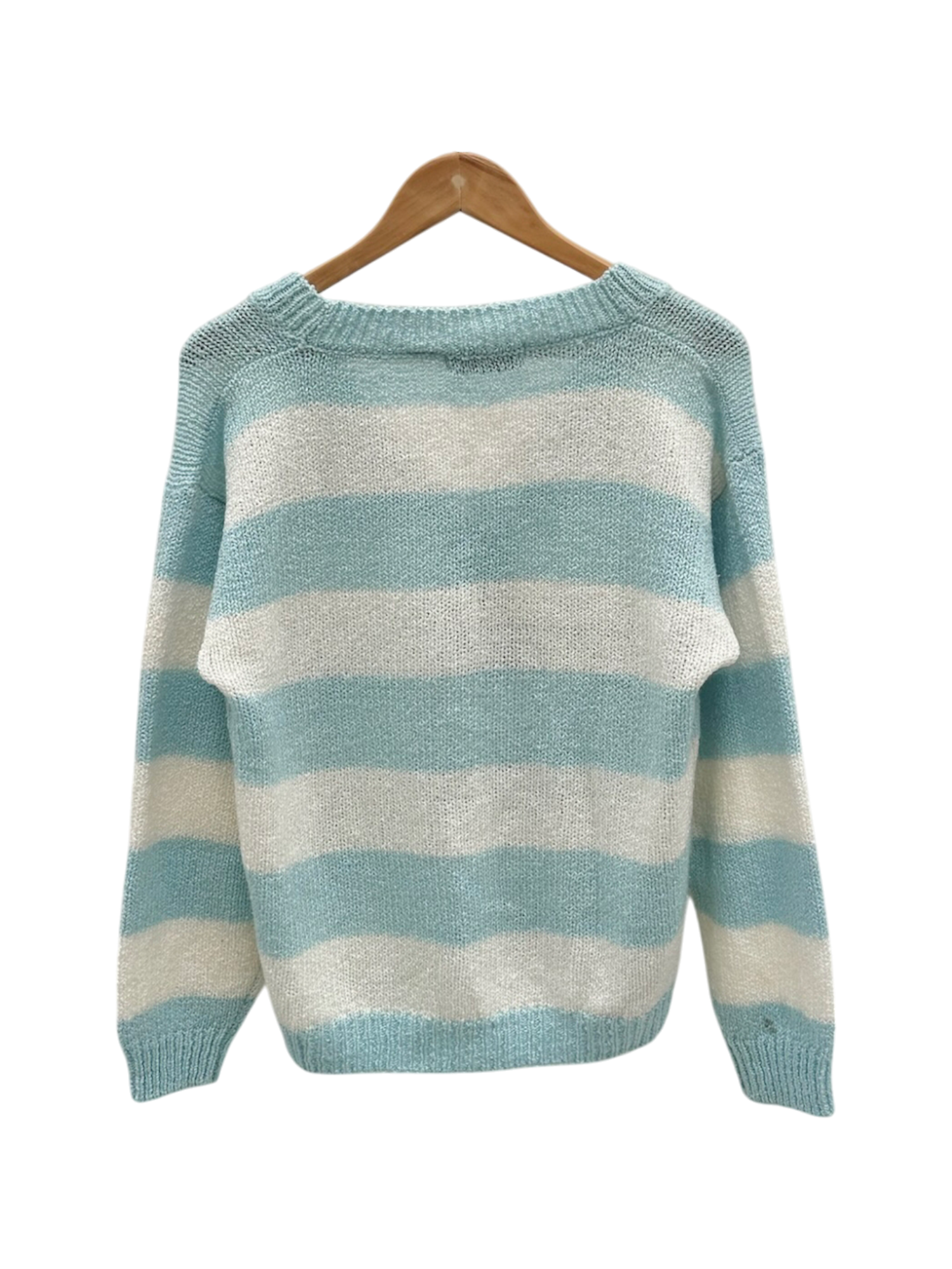 Vintage Pastel Blue & Cream Striped Button Sweater (M)