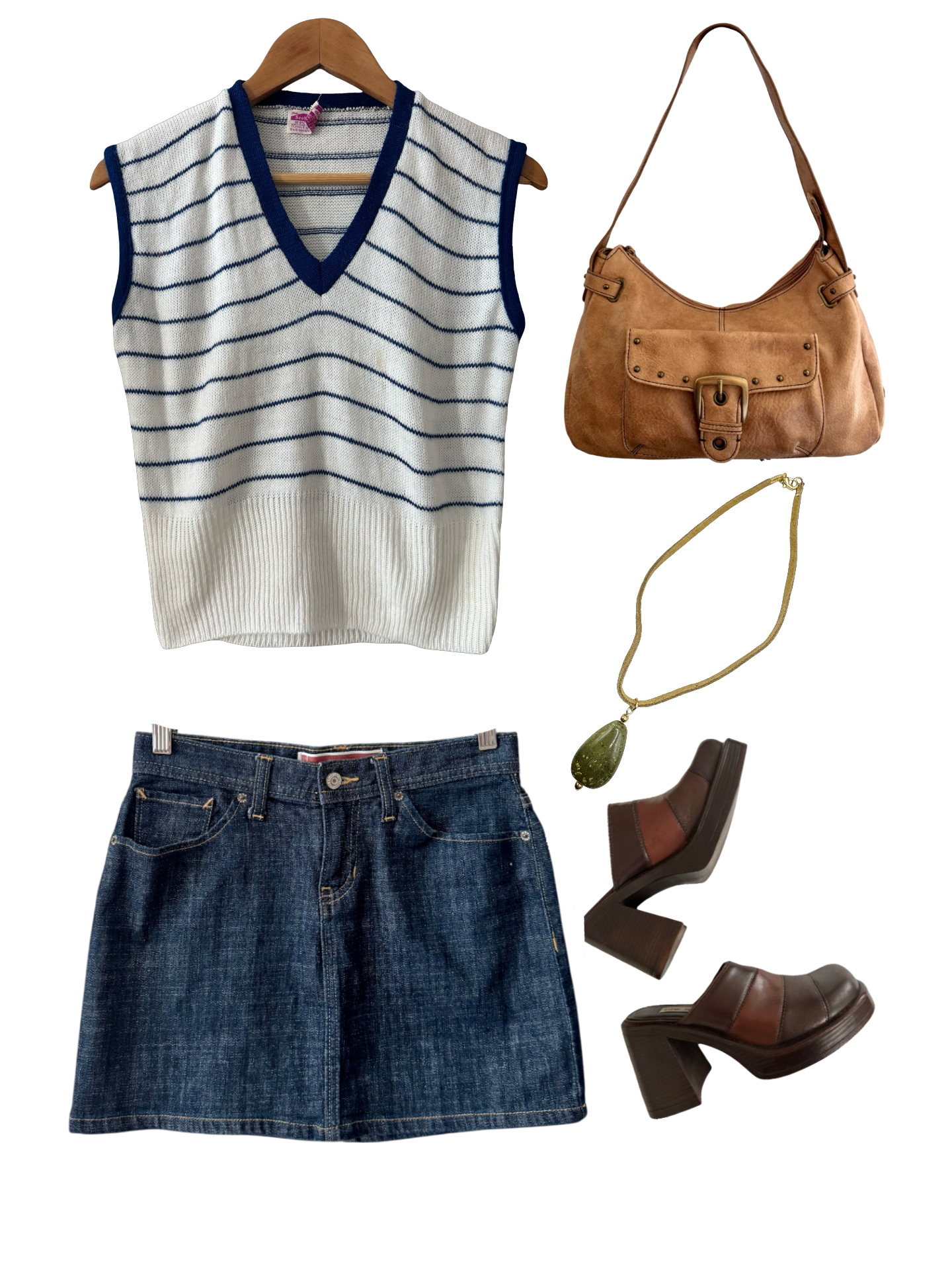 Vintage 90s Coastal Stripe Knit Vest (S/M)
