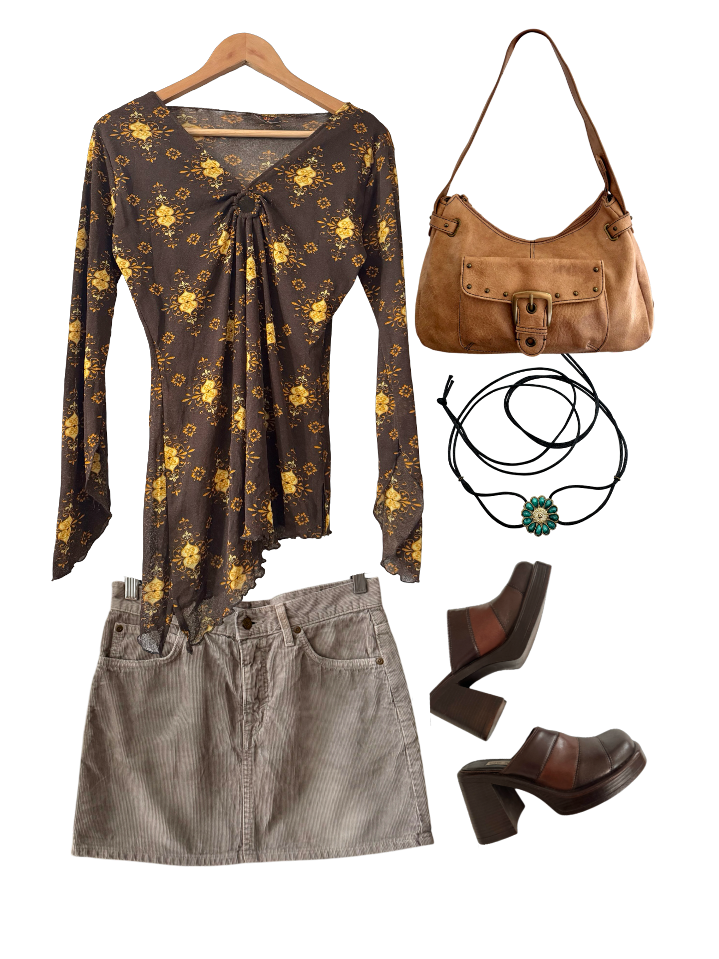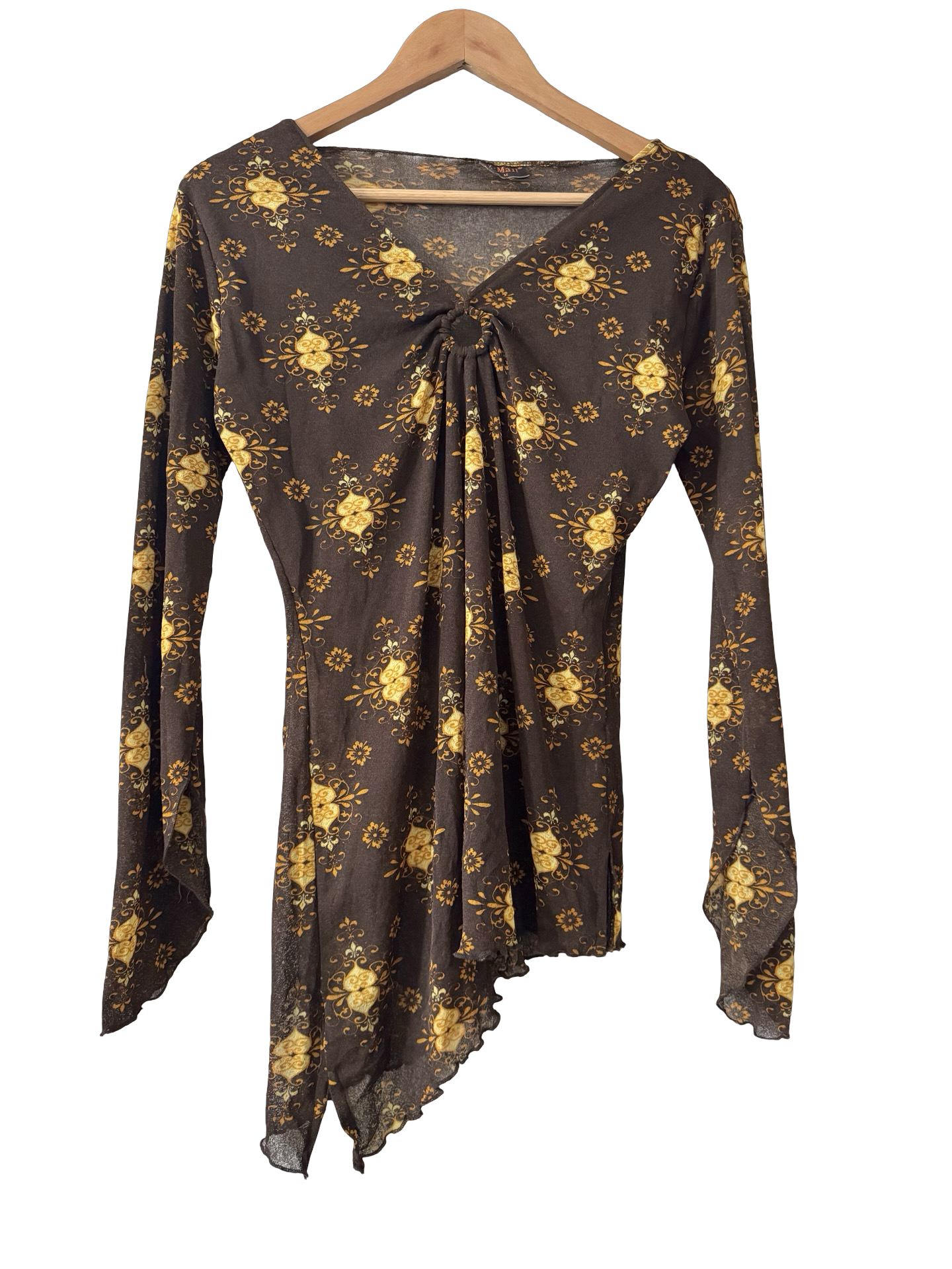 Vintage Y2K Cocoa Boho Floral Asymmetrical Top (M/L)