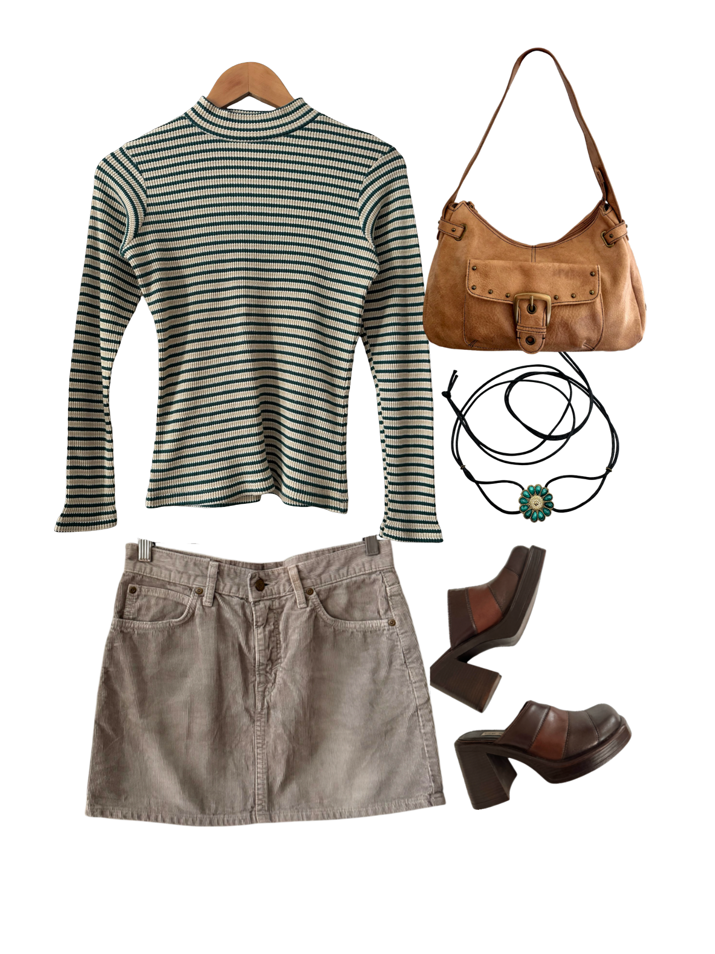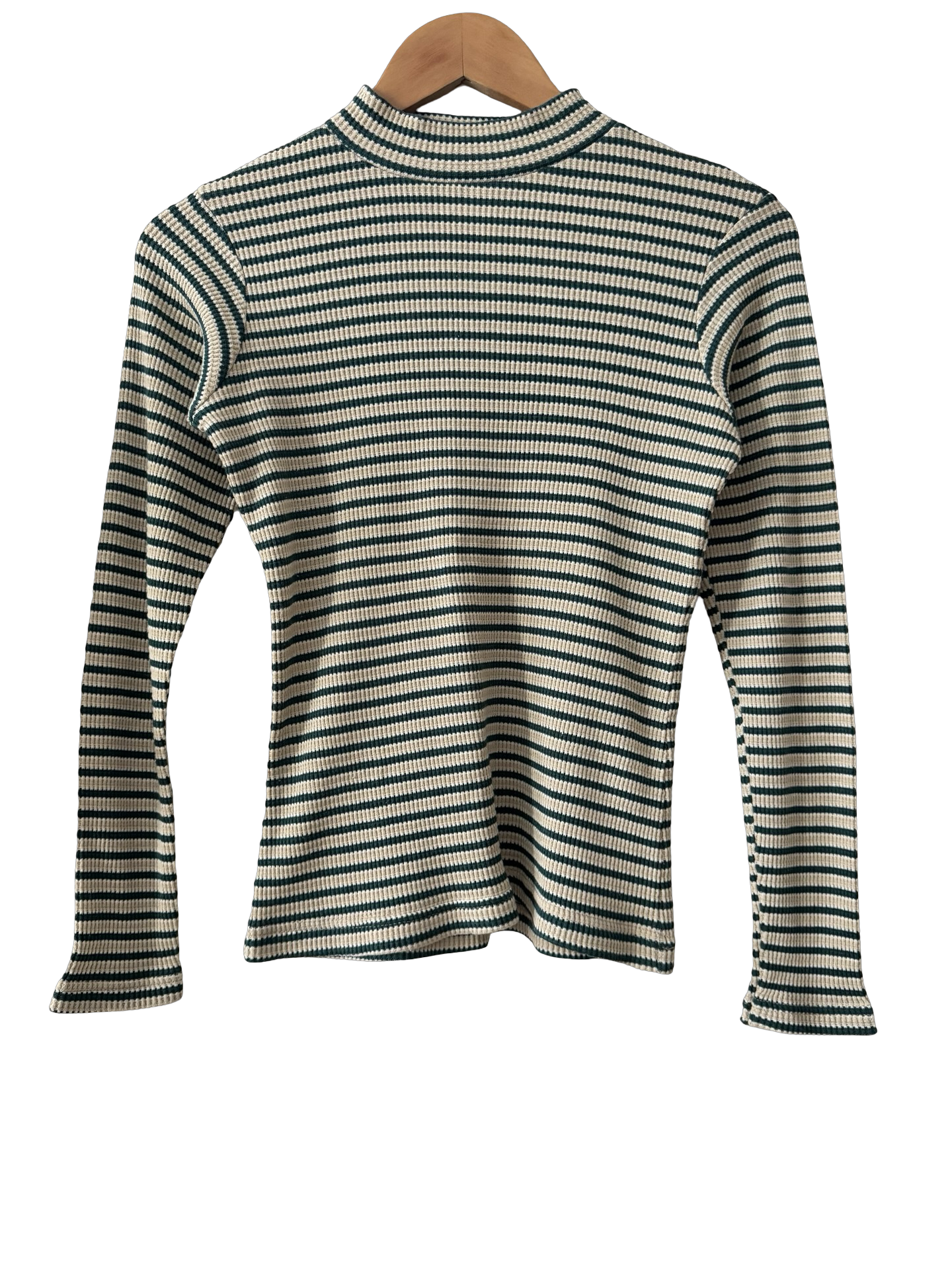 Vintage 90s Ribbed Stripe Mockneck Top (M)