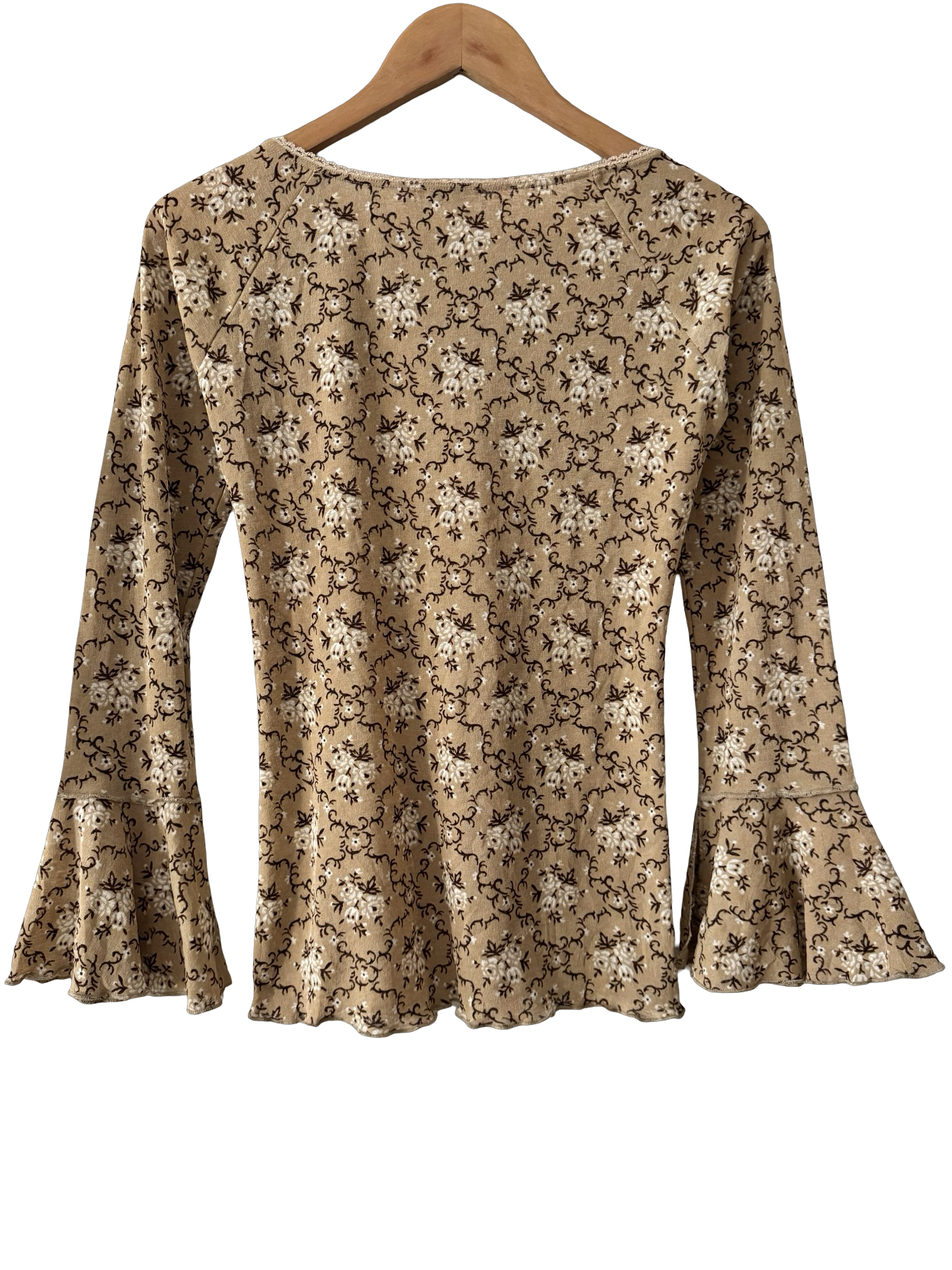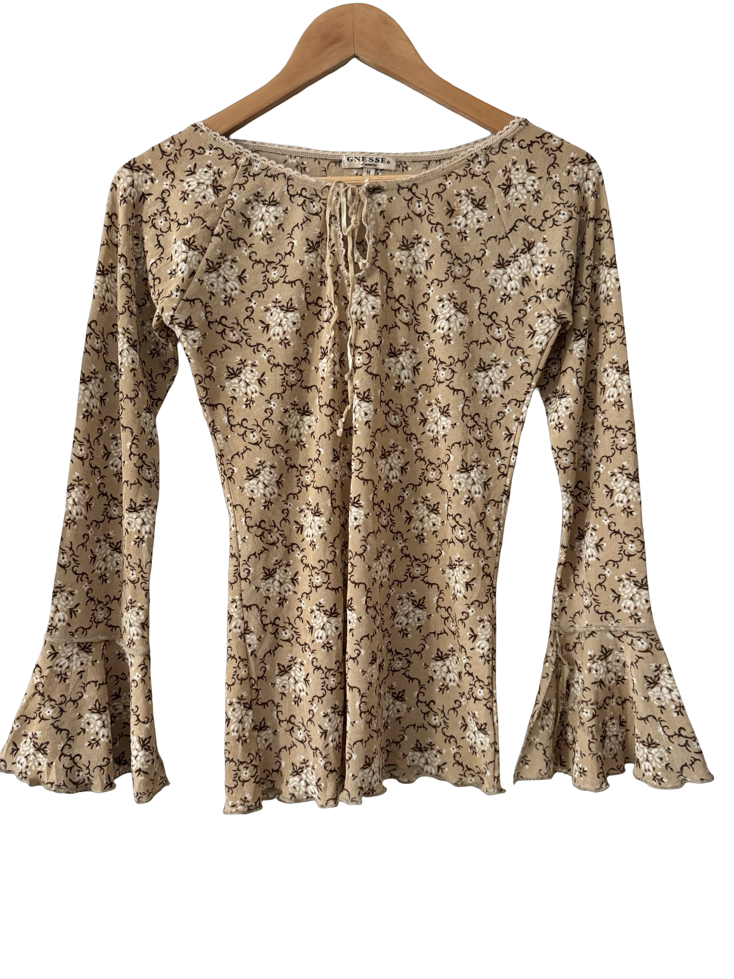 Vintage Y2K Boho Floral Bell Sleeve Top (M)