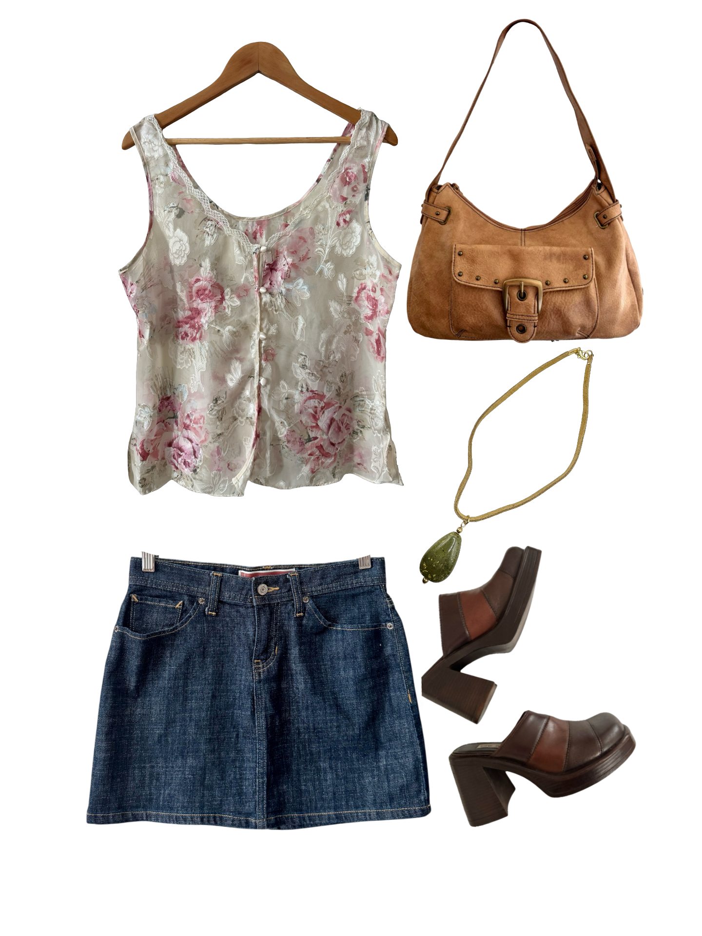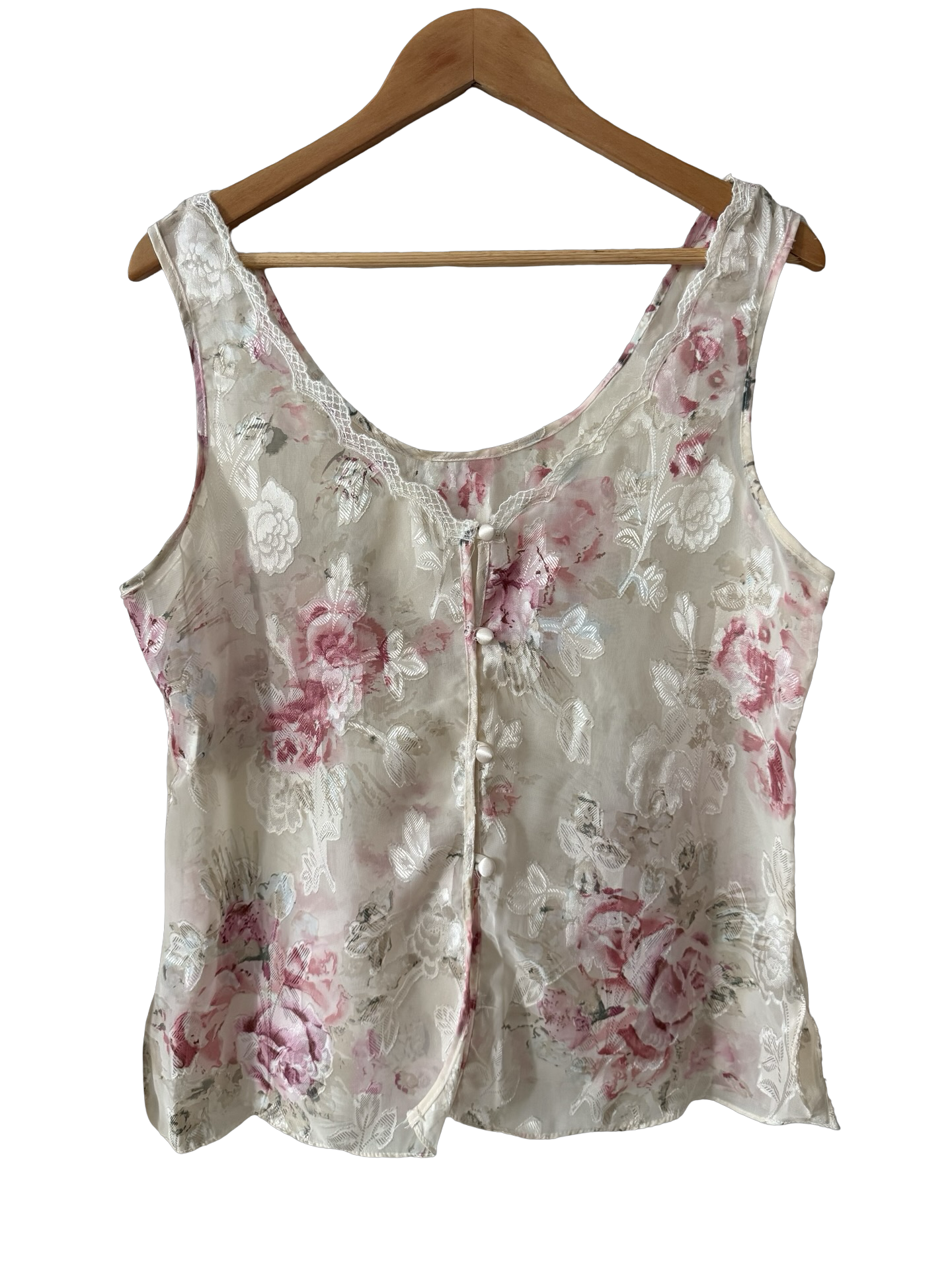 Vintage 90s Soft Girl Floral Button Tank (L)