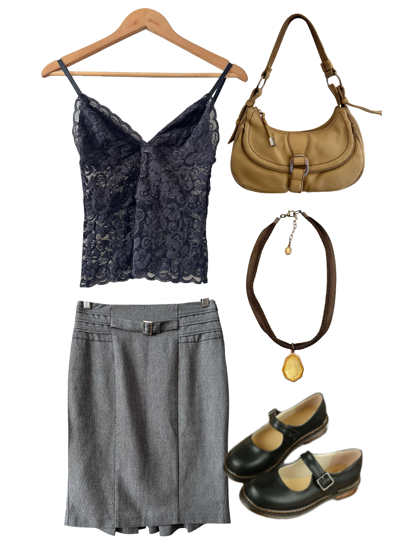 Vintage Y2K Black Lace Fitted Cami (XS/S)