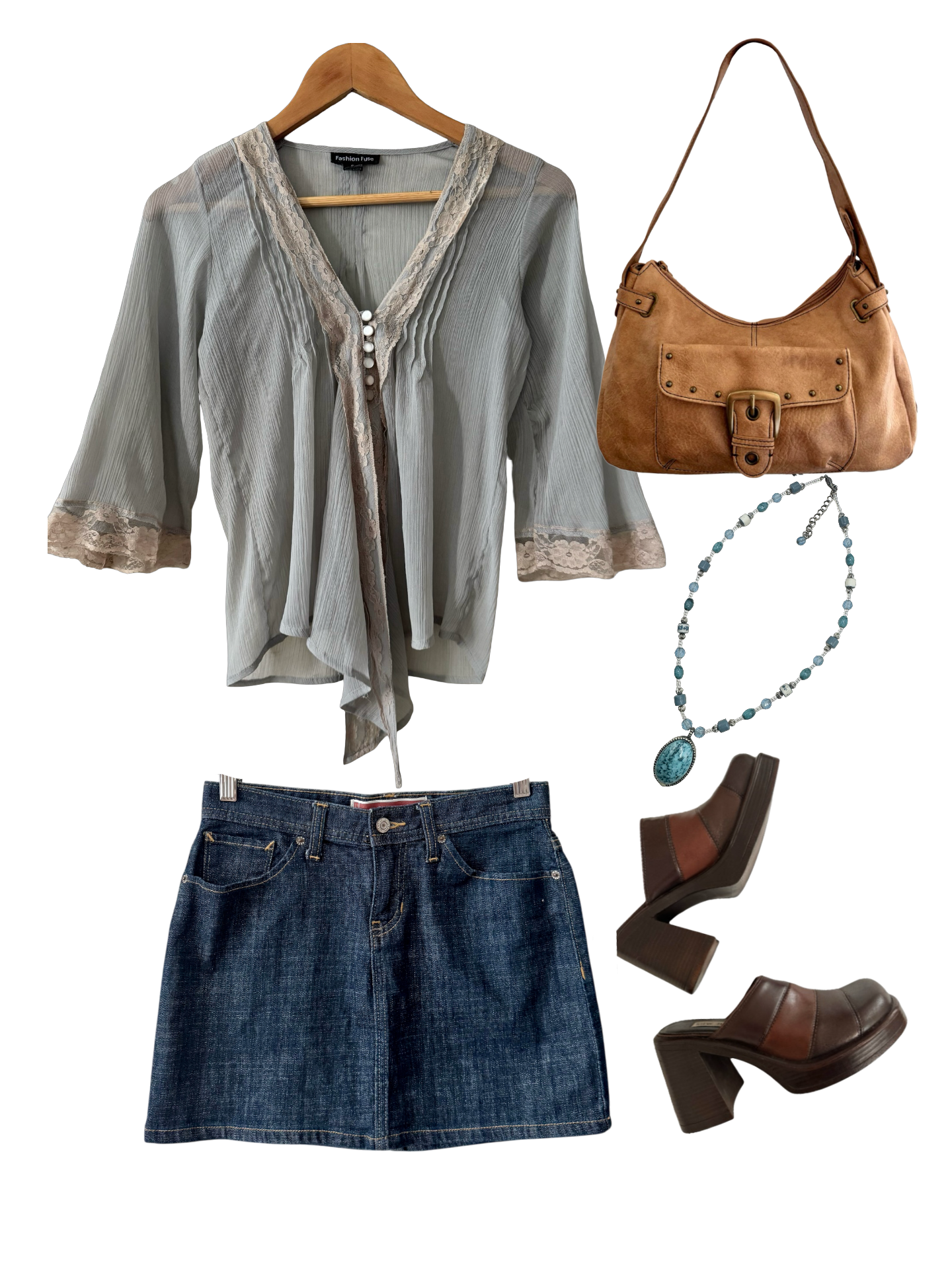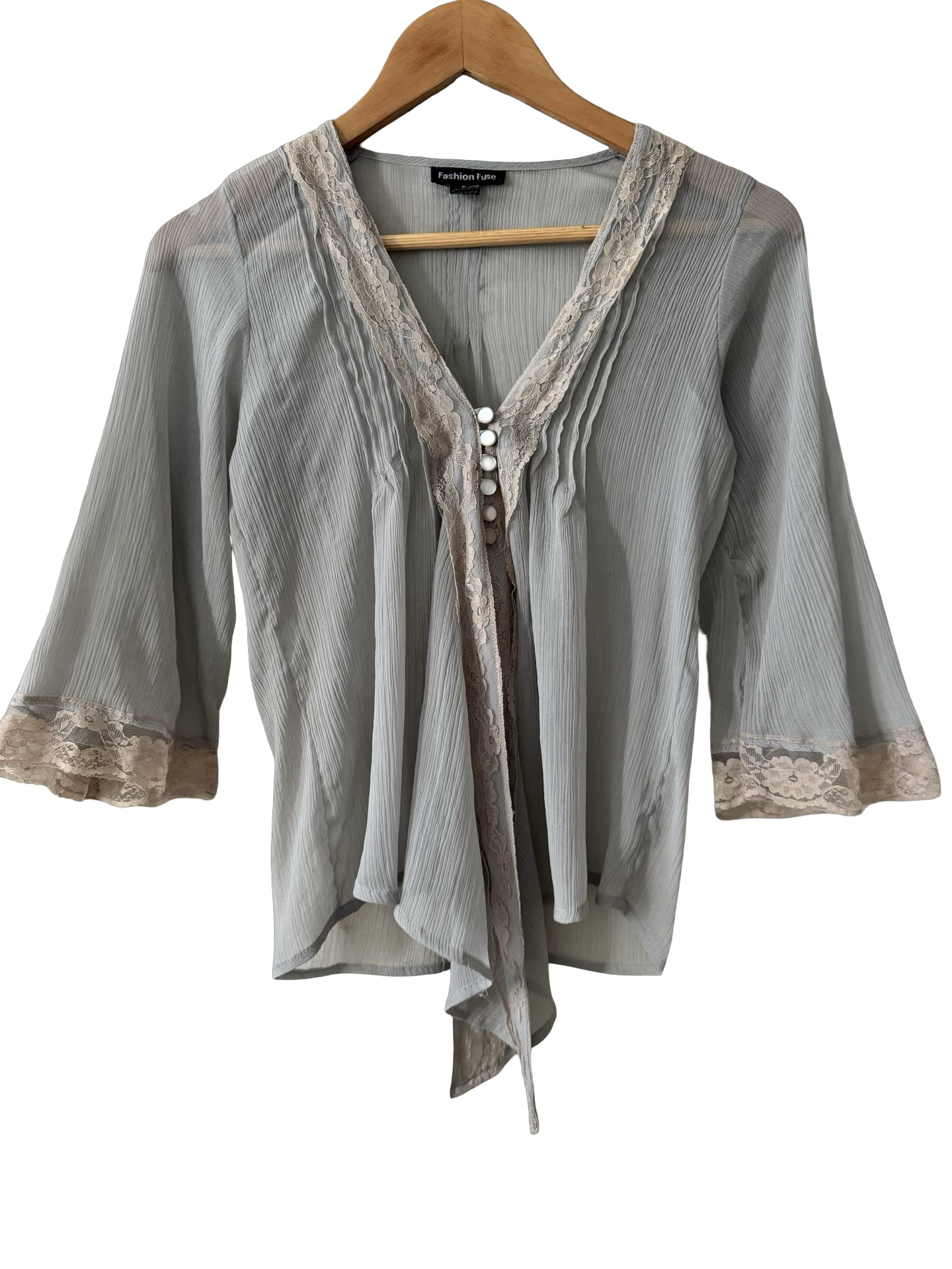 Vintage Y2K Sheer Lace Trim Tie Front Top (S)