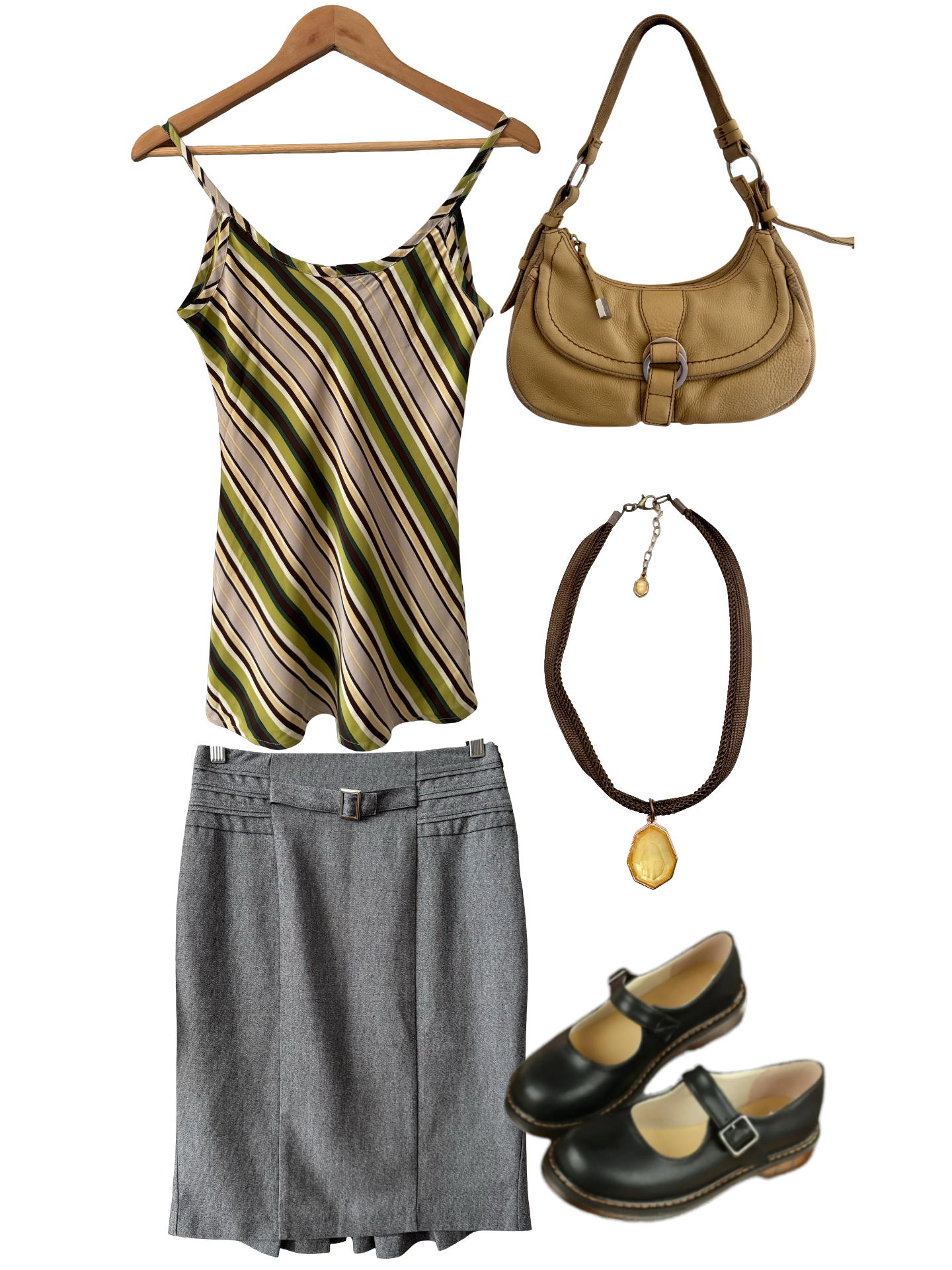 Vintage Y2K Downtown Stripe Silk Cami (M)