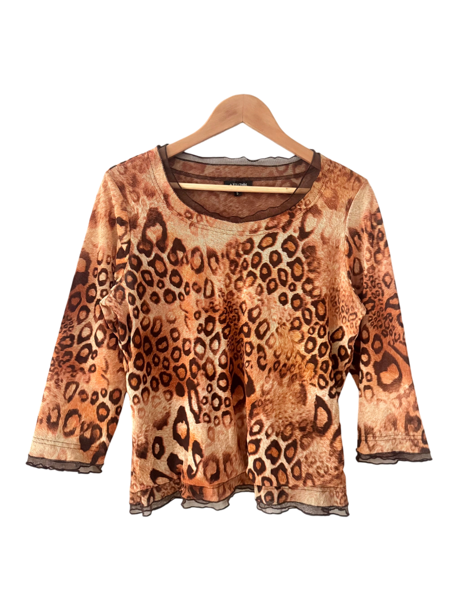 Vintage 90s Leopard Mesh Long Sleeve Top (L)