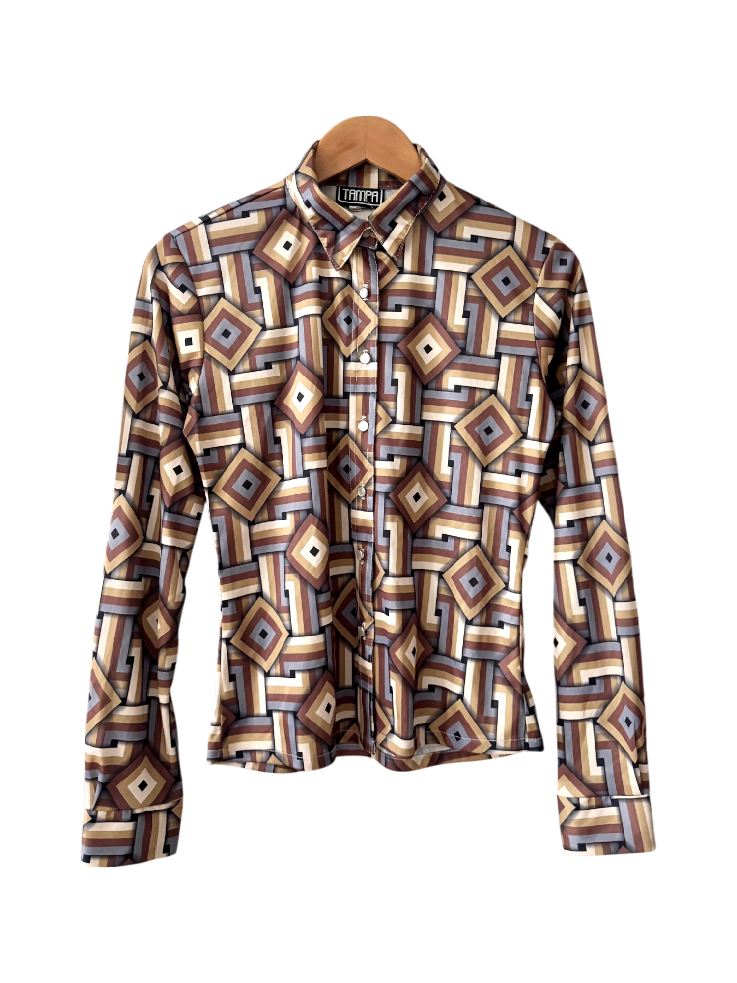 Vintage Geometric Print Button Up Blouse (M)