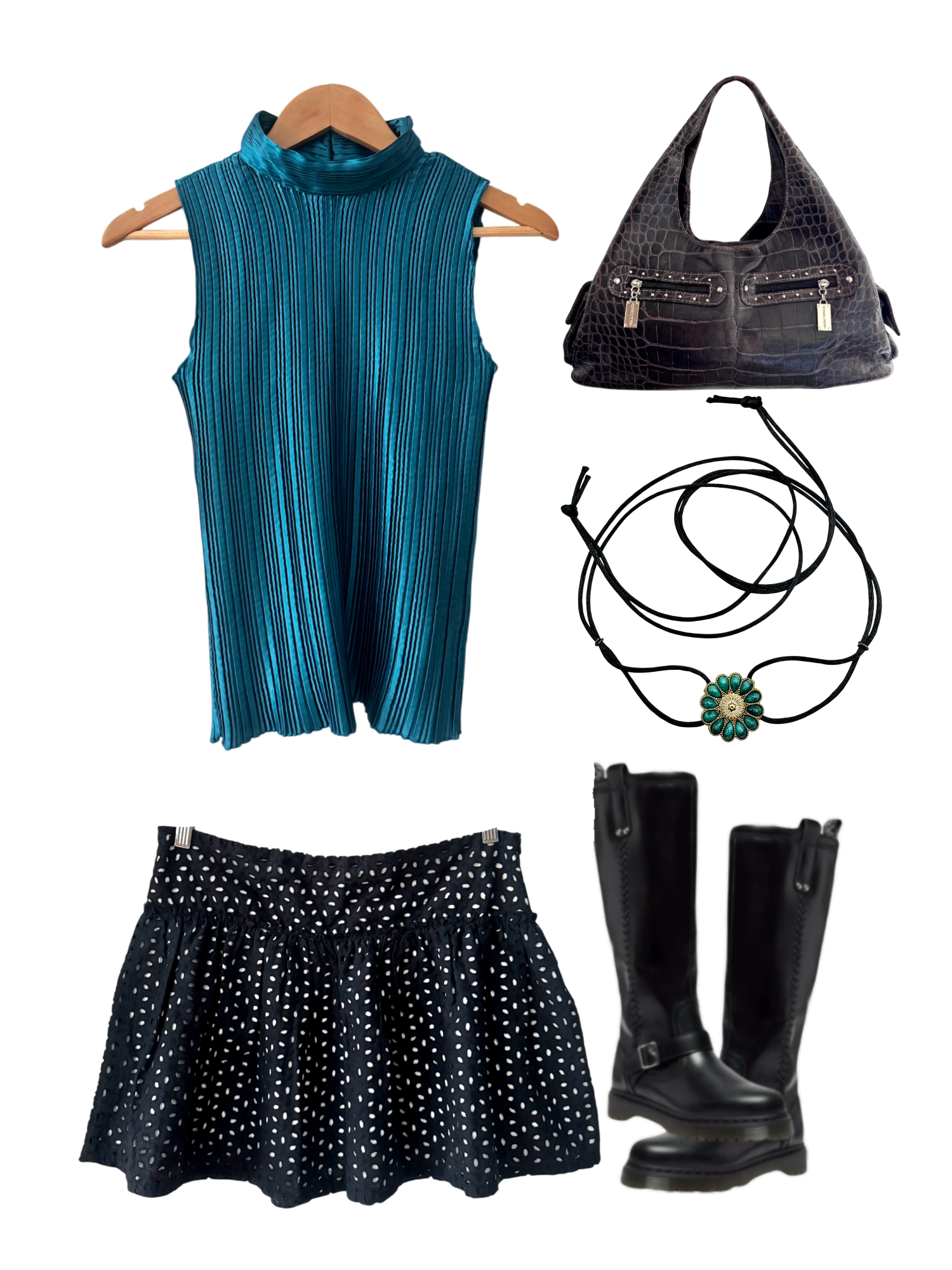 Vintage Y2K Lagoon Pleated Mock Neck (M)